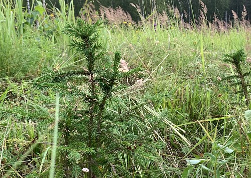 На выгоревшем от лесного пожара месте посадили сеянцы ели европейской и восстановили почти три гектара. В посадке приняли участие 50 человек.