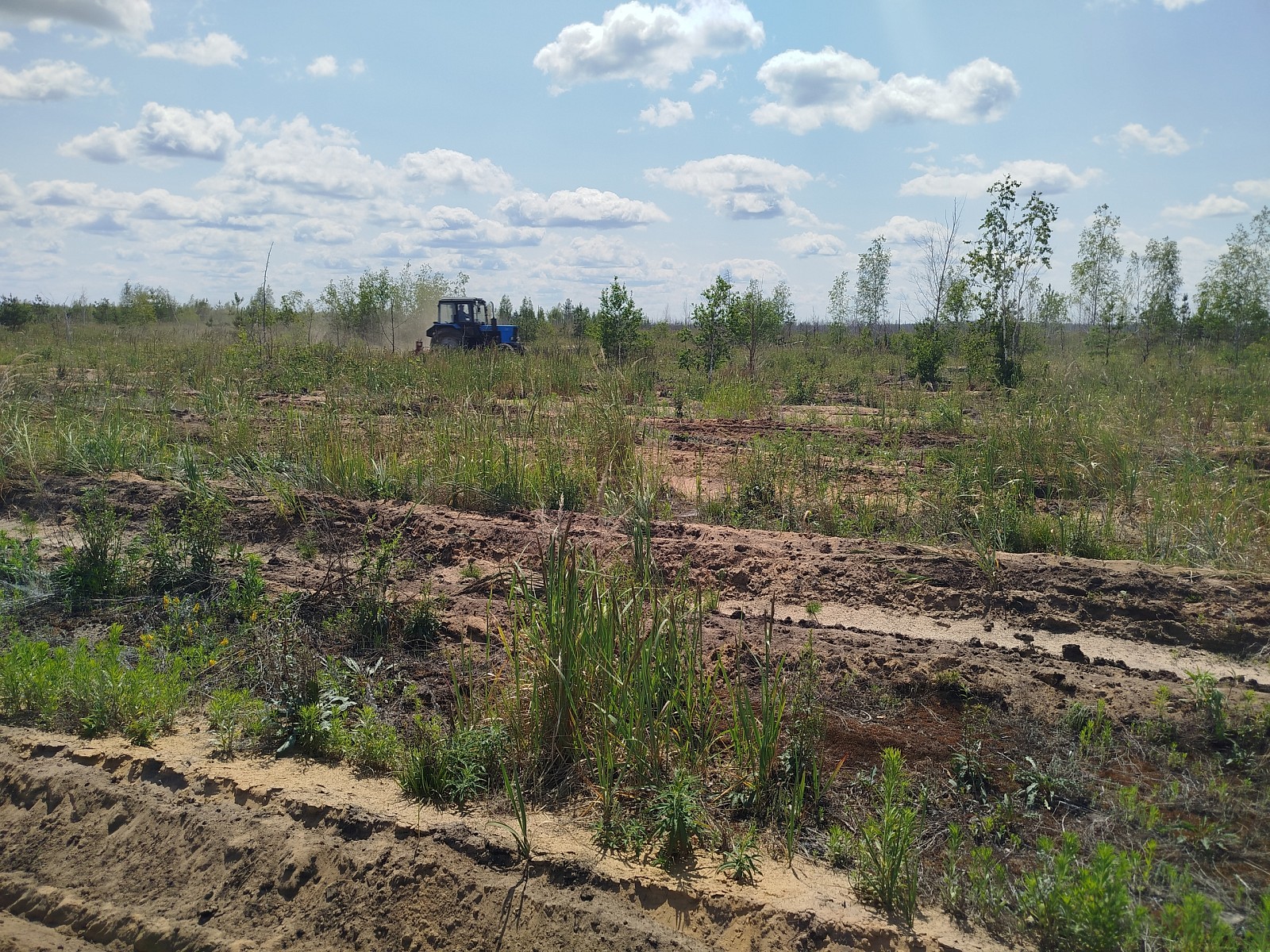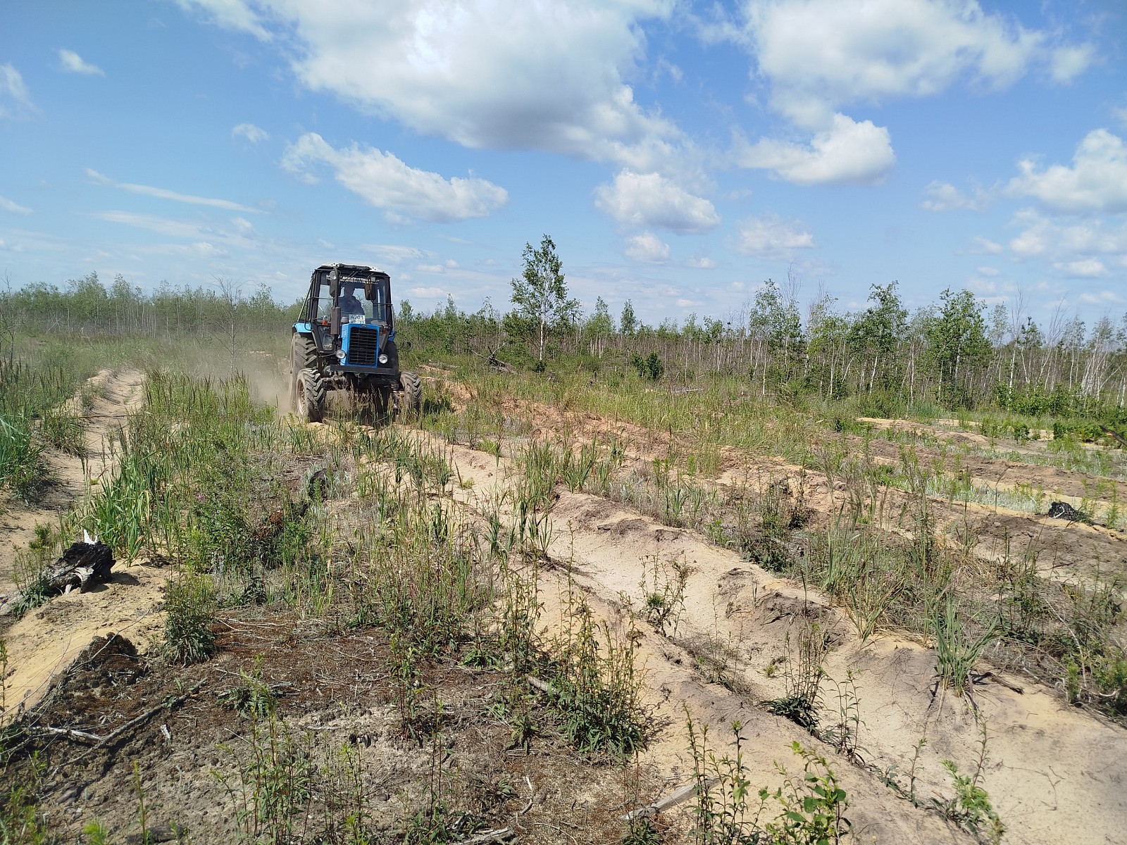 В 2010 и 2022 годах Национальный парк «Мещерский» значительно пострадал от пожаров. Причем некоторые участки леса были восстановлены после пожаров 2010 года, но спустя 12 лет молодые леса сгорели снова. В 2023 году на места пожаров приехали волонтеры, чтобы снова сажать деревья. Тогда на участке было высажено 11 000 сеянцев. После посадки предстояла долгая работа: дополнения на месте неприжившихся саженцев и аэрация борозд с помощью трактора. За счет рыхления почвы улучшается приживаемость сосновых сеянцев, а также удаляются сорняки. Вот и в 2025 году трактор снова бороздит бывшие горельники. Совместная работа лесничих и волонтеров не прошла даром для этих мест. Десятки тысяч волонтёрских деревьев уже тянутся к солнышку на горельниках. А сотрудники лесного фонда фиксируют, что сюда возвращаются животные: в окрестностях живут полтора десятка волков, олени, шесть косуль и лосиха, которая родила лосенка. На почерневших песках появляется сон-трава, но самое заметное – это, конечно, десятки молоденьких сосен.