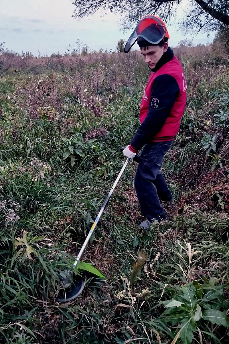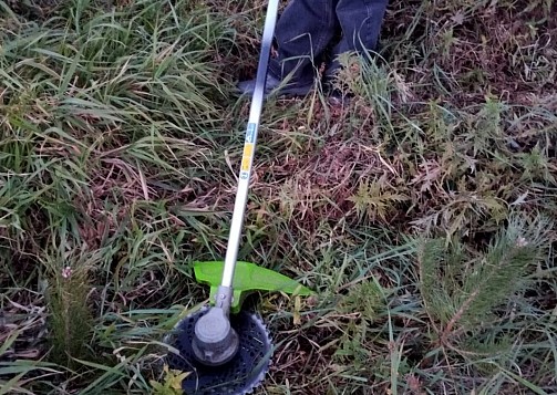 В Звенигородском участковом лесничестве (Одинцовский район) когда-то шумел сосновый лес. Однако его постигла участь многих подмосковных лесов: маленький жучек короед уничтожил высокие сосны и заразил землю. В таких случаях проводят сплошные санитарные рубки и уничтожают больные поврежденные деревья. Они не подходят даже на дрова. После этого лес восстанавливают новыми посадками. Такая посадка была организована весной 2024 года. Но чтобы лес вырос в первые годы роста сосен необходимо проводить агротехнические уходы. Среди таких мероприятий - обязательные окашивания. Дело в том, что трава на первых порах растет гораздо активнее и агрессивнее маленьких деревьев. И попутно трава захватывает и больше места под солнцем и питательных веществ в земле, угнетая сосны. Чтобы этого не происходило и окашивают лишнюю растительность, обходя каждое деревце. Такую работу выполнили волонтеры во время агротехнического ухода 28 сентября 2025 года.